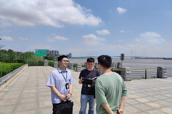 图为黄石港区纪委监委干部在长江沿线调查“禁渔令”落实情况