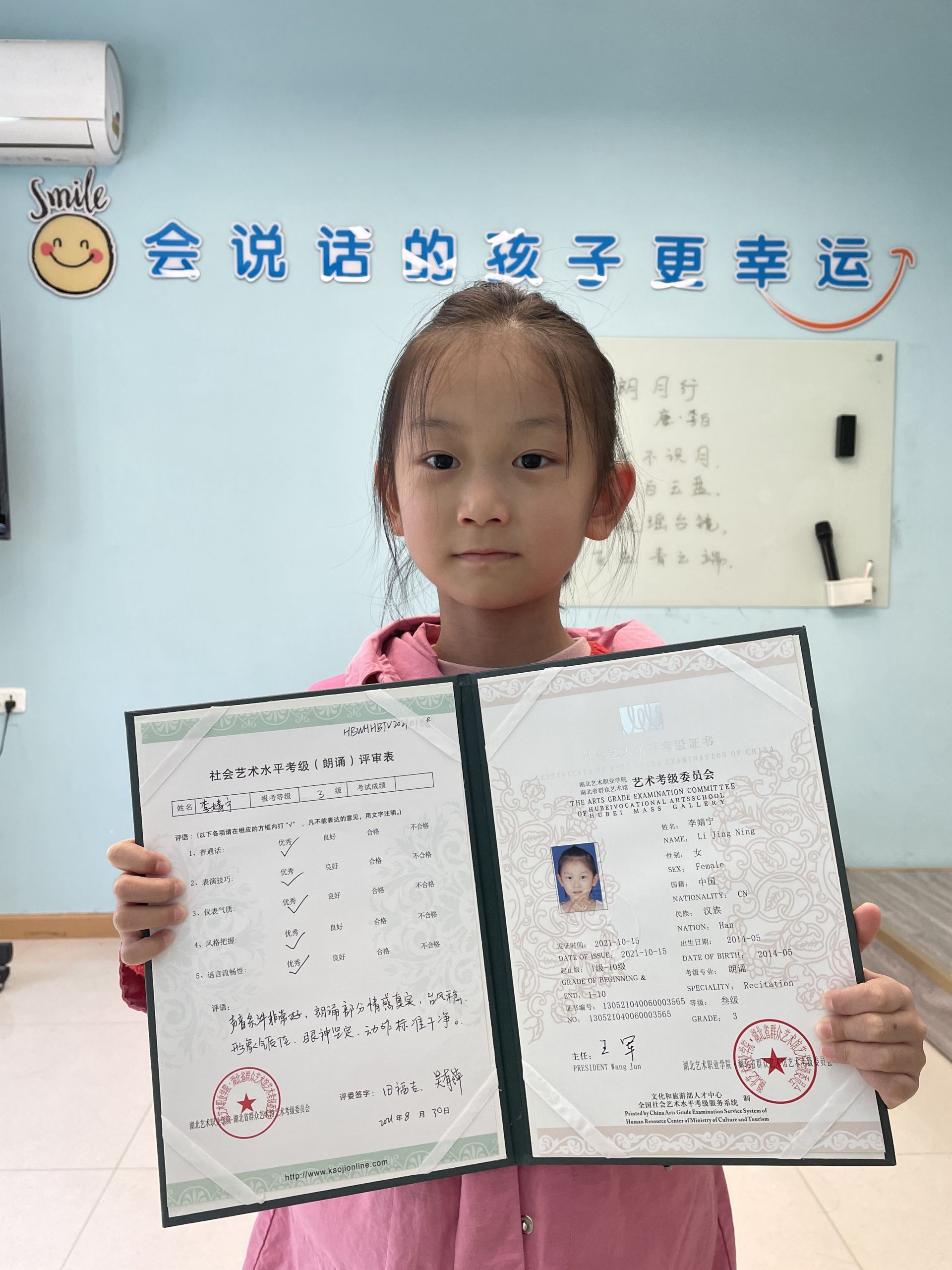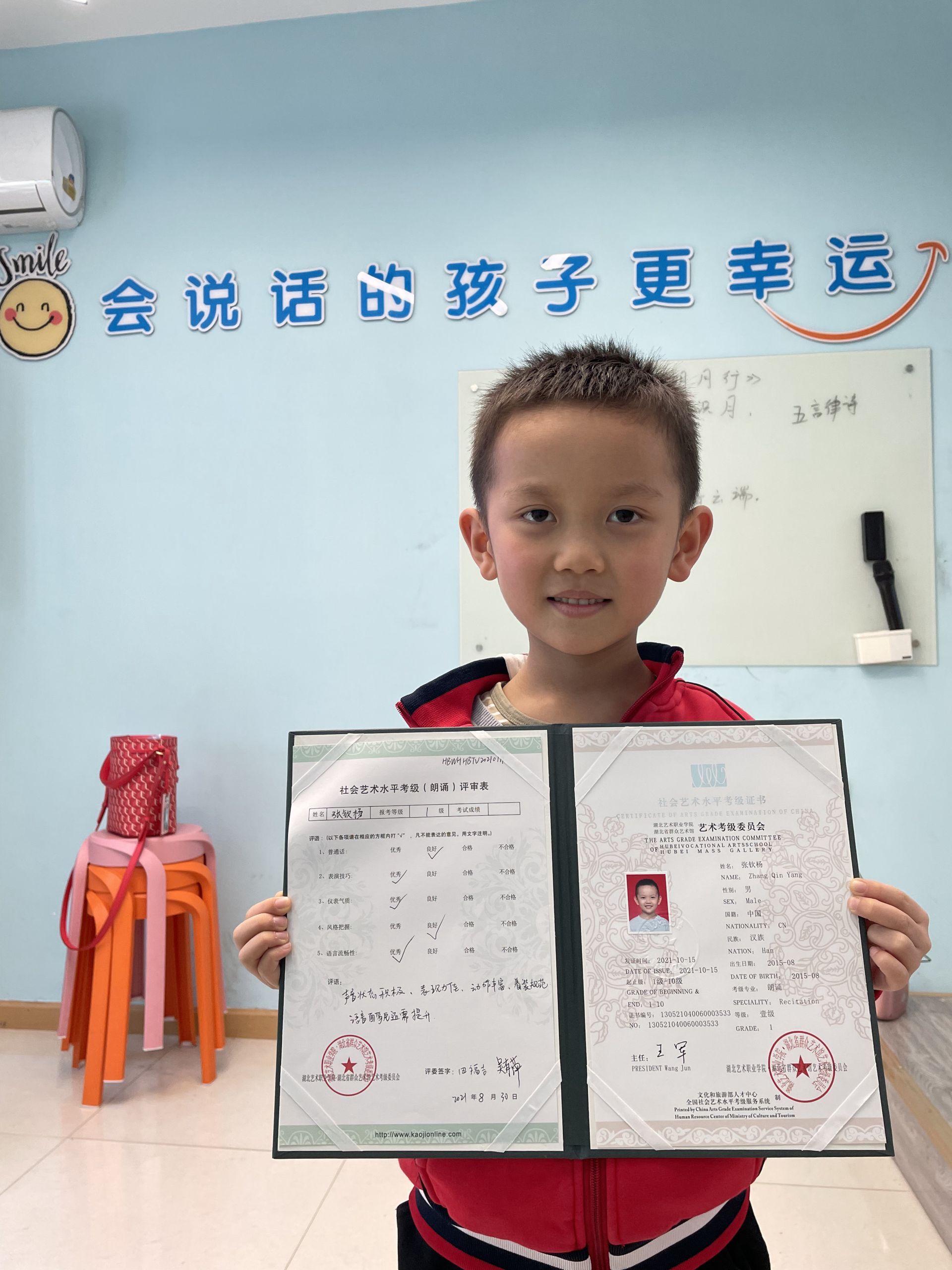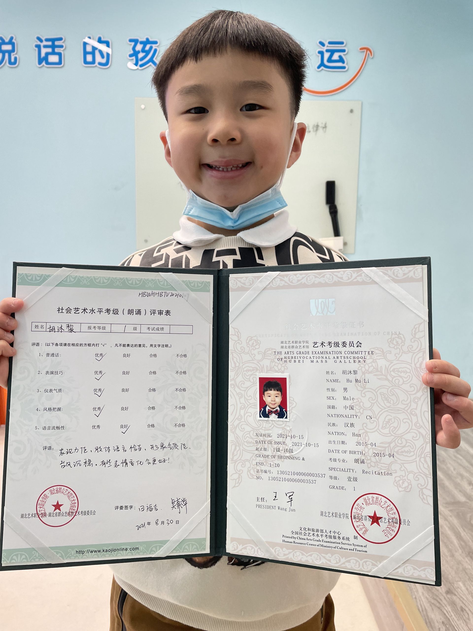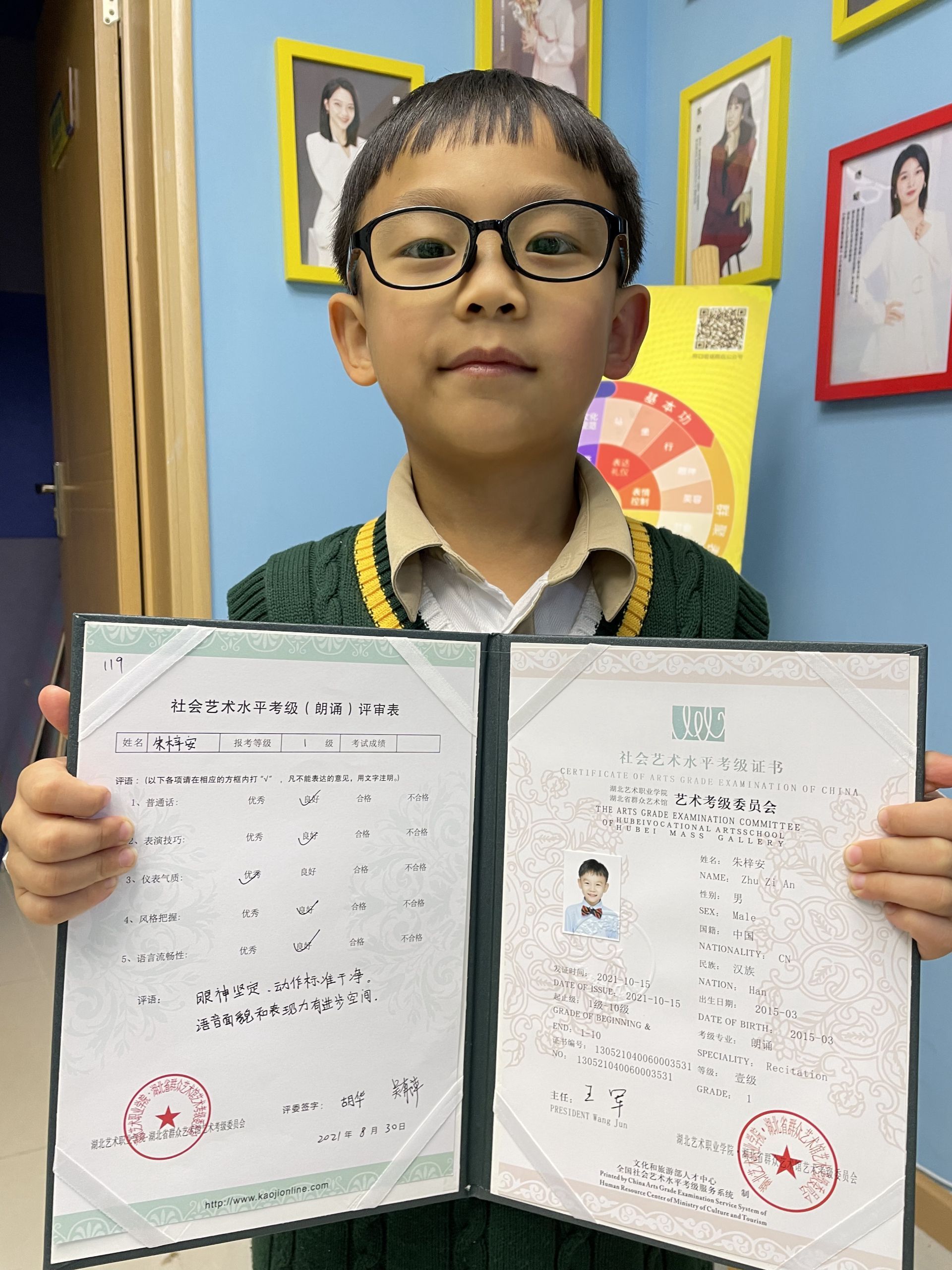 21年考级通过率95%,学员们拿到了第一张朗诵类考级证书