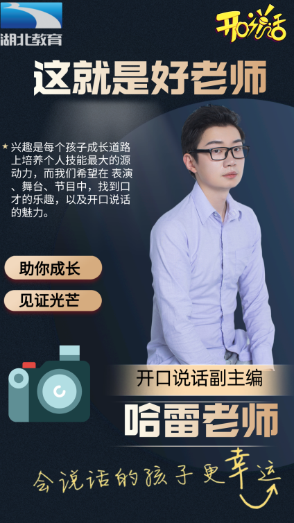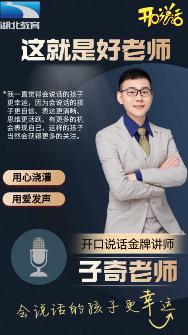 “开口说话”的子奇老师,他是国内首创作文音乐剧编导、资深少儿口才培训讲师、湖北长江广电传媒(教育频道)嘉宾主持也是“开口说话”教务主管。