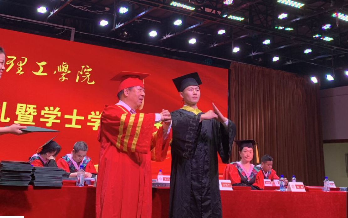 从早上8点到下午6点,除了中午短暂的休息,赵作斌校长均站立着。看着台上的已经64岁的校长如此辛苦,毕业生们禁不住“眼睛湿润润的”。活动进行到一半,一位女同学悄悄走上领奖台,为校长送上了惊喜而又暖心的花束,现场的同学们纷纷起立,欢呼和鼓掌。事后,这位同学说道:“知道校长要亲自为我们颁发学士学位证书,我们都感到非常荣幸和自豪,所以我和同学们一起提前准备好了这束花,感谢校长和学校对我们的培养,感谢老师对我们的教诲,我们会在新的旅途上继续奋斗、拼搏,继续发扬母校追求卓越的品质。”