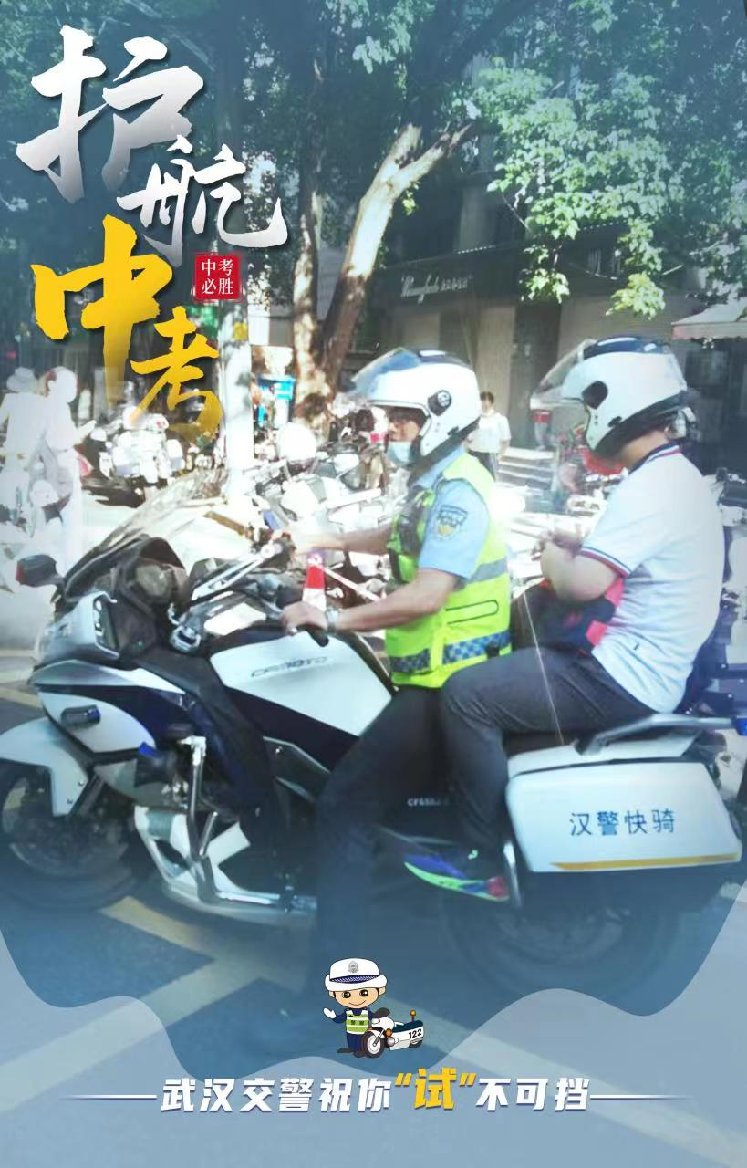 7点45分,一辆出租车停靠在路边向快骑队员求助,该司机表示车上有参加中考的考生,需要前往后湖大道实验中学考点,希望交警帮助。江岸区交通大队民警立即给考生戴好安全头盔,驾驶警用摩托车于早8时5分将其安全送至考点。