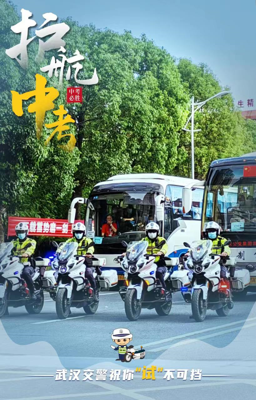 武汉市公安局交管局相关负责人介绍,中考期间,全市重点加强主干道、各考点周边路口、路段的执勤力量,考点门前备足警力、全力护考,考点设置考生专用通道,并摆放禁鸣、减速等交通提示牌,保障考生进出考点安全顺畅;周边路段、主干道加大机动巡逻力度,汉警快骑根据交通流的变化及时采取疏导措施,快速处理各种道路交通突发事件,确保交通安全畅通。