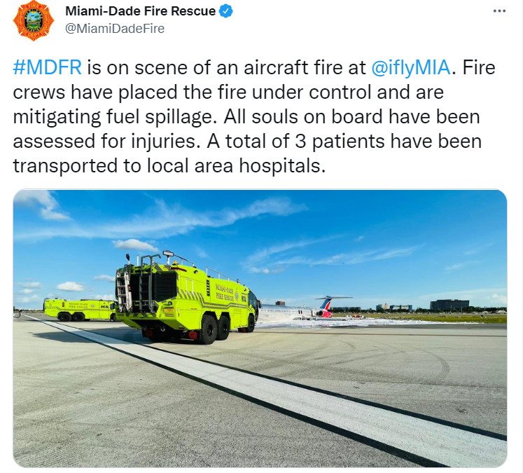 飞机外形没有太大损伤,不过,据迈阿密消防救援部门称,目前共有三人受伤。两个被送到了杰克逊西方医院,第三个被送往杰克逊纪念医院。