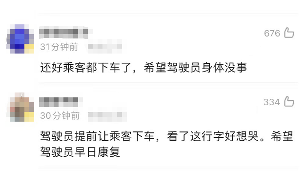 网友评论:驾驶员提前让乘客下车,看了这行字好想哭。希望驾驶员早日康复。