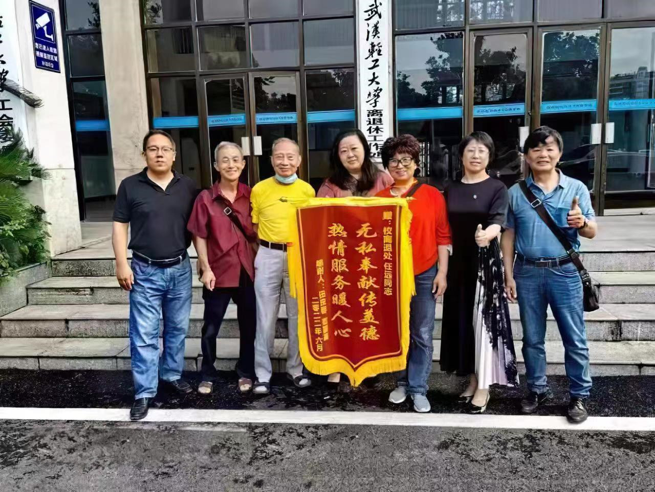 帮扶暖人心,真情永传递。日前,武汉轻工大学87岁的退休教授田良春和老伴范丽高,在退休第二党支部书记贾汉良、支委盛国元同志的陪同下,来到离退休工作处,将一面闪亮的锦旗送到该校老干部工作者、离退处党总支干事任远老师的手里,表达谢意。