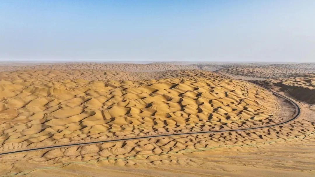 中国交建新疆乌尉公路包尉且沙漠公路项目经理王云飞称自己“从未见过这么大的沙包”:“为了完成任务,我们施工人员吃住都在现场,驾驶着40多台大功率履带式推土机整整推了150天,才彻底把这座山‘削平’,仅这个沙山的挖方量就高达150万方,占整个工程挖方量的八分之一。”