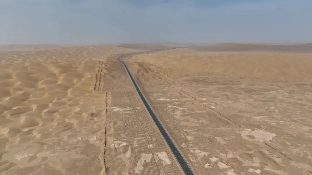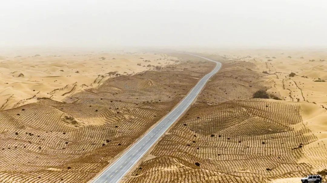 在世界第二大流动沙漠修公路,光靠吃苦耐劳还不够,关键是要解决好防沙固沙难题。怎样保护公路免遭黄沙掩埋?建设者采用了“中国魔方”,体现了中国智慧的“草方格”技术。