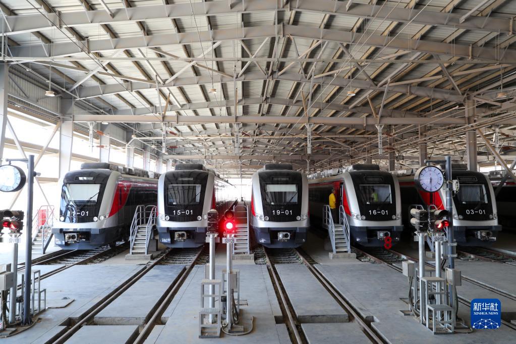 这是7月3日在埃及开罗东部拍摄的斋月十日城轻轨铁路一处轻轨列车停车库。新华社记者 隋先凯 摄