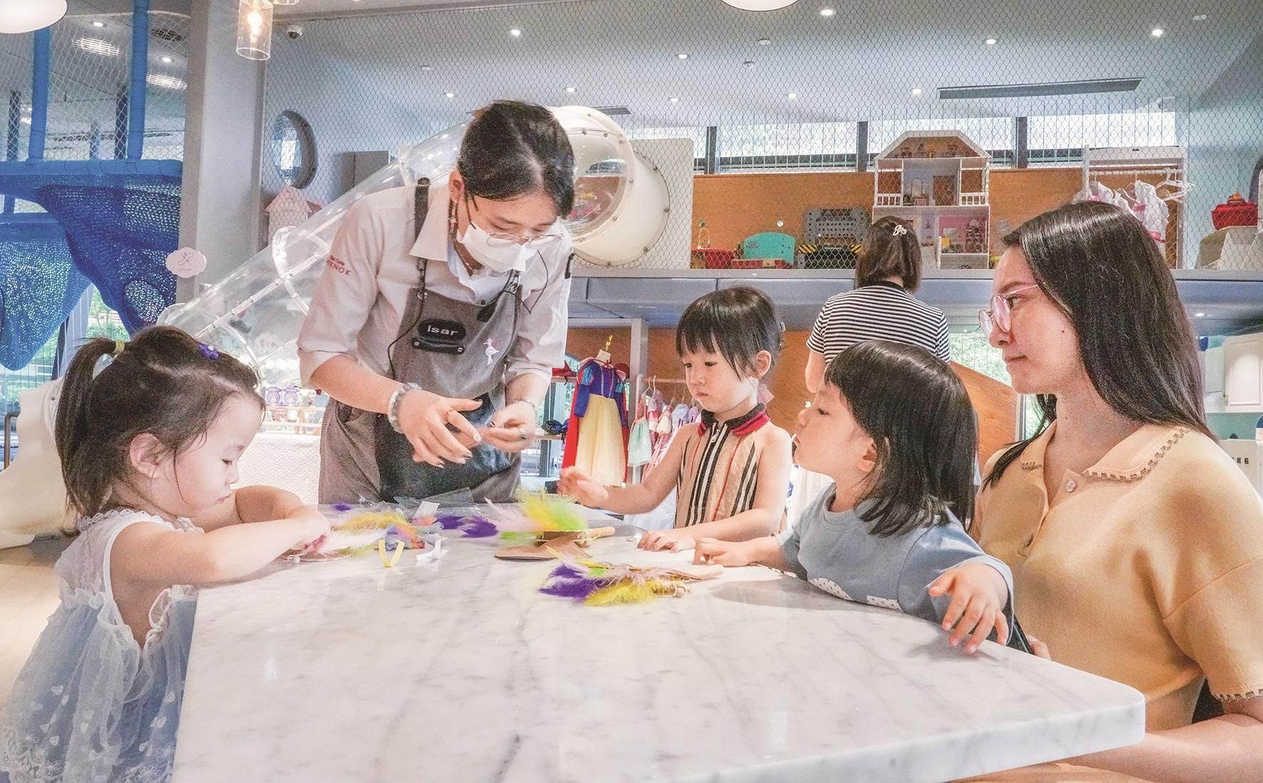 “此前闺蜜一起带娃聚会,我在朋友的介绍下第一次体验了亲子餐厅,后来就经常带娃来。”田女士说,这里的服务员还能陪娃玩,组织小游戏,她可以带着电脑在餐厅处理工作,或者跟闺蜜喝下午茶聊天。