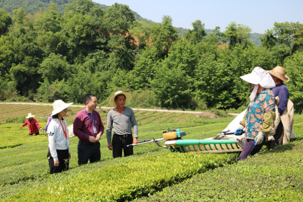 市纪委监委派驻市农业农村局纪检监察组结合监督单位行业特点,坚持到田间、见农民、接地气、查实情,依靠群众对农业农村部门履职末端进行深入细致了解,对惠农惠民政策落实情况进行重点关注。图为该组纪检监察干部在宜都市聂家河镇邓家桥村茶园向村民了解惠农政策落实情况。