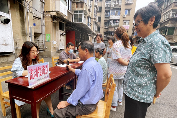 西陵区纪委监委坚持到一线去发现和解决问题,扎实开展流动接访,推动解决群众反映的急难愁盼问题,实现信访前移“接地气”,服务群众“连民心”。图为该区纪检监察干部在西坝街道甲街社区开展零距离接访,将“接访台”搬到群众家门口,倾听群众诉求和呼声。