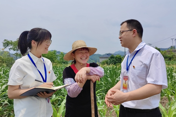 长阳土家族自治县纪委监委发挥群众监督作用,加强对乡村振兴项目建设、农村“三资”管理、村干部作风等问题的贴身监督、有效监督。图为该县纪检监察干部开展党员干部“下基层、察民情、解民忧、暖民心”实践活动,在龙舟坪镇向群众了解村干部履职情况。