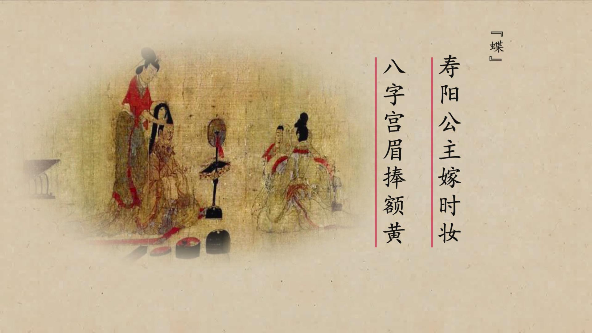在中华传统文化中,女子的妆容在历朝历代都是一道亮丽的风景线。“额黄”又称“花黄”,指的是女子用金粉等黄色颜料装点额头的一种化妆形式。在南北朝时期的《木兰辞》中“当窗理云鬓,对镜贴花黄”,还有唐代诗人李商隐的《蝶》:“寿阳公主嫁时妆,八字宫眉捧额黄”,看来啊,从平民女子到皇家公主,都不约而同地都追捧了这股潮流。