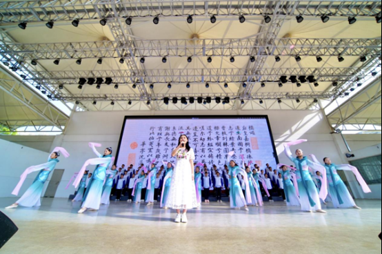 图为该县职教中心师生以歌舞形式吟诵屈原《橘颂》