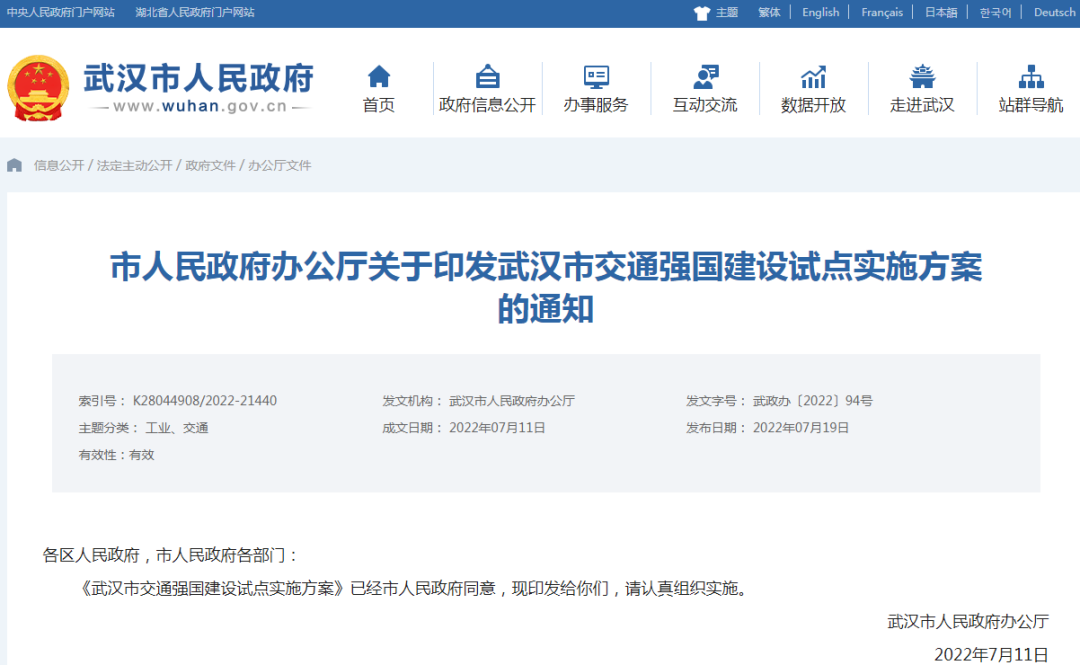 武汉市人民政府门户网站发布