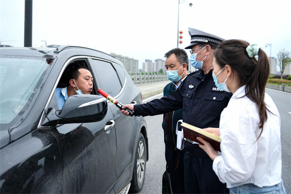 图为宜城市纪委监委派出第八纪检监察组联合该市公安局交警大队严查酒驾醉驾行为及其背后的“四风”问题