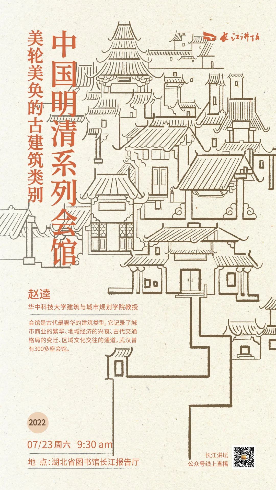 武汉曾经是北京城以外会馆数量最多的城市,共有300多座会馆。会馆是古代最奢华的建筑类型,它记录了城市商业的发展、地域经济的兴衰、古代交通格局的变迁。本周讲座,长江讲坛邀请到华中科技大学建筑与城市规划学院赵逵教授,以会馆为介质,为我们讲解古代地理、人文、聚落、建筑交互影响的内在逻辑。 时间:2022年7月23日上午9:30地点:湖北省图书馆长江报告厅