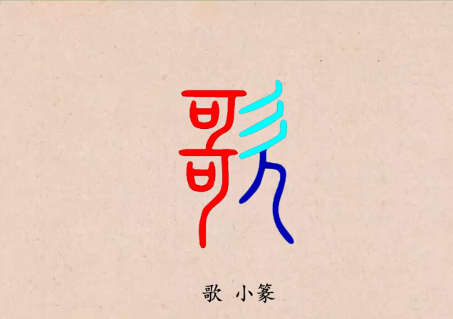 我们现在的简体字形歌,是由歌的小篆字形简化而来。左边是可的叠加,右边是欠,欠的本义是打哈欠,下面是人,上面像人呼出的气。