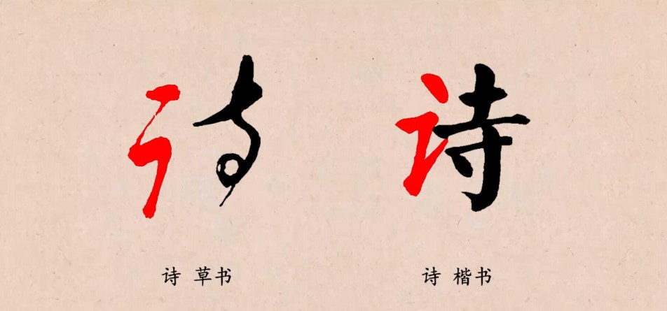 “诗”发展到草书和楷书时就将“言”简化成了“讠”,也就有了我们现在使用的简体字形诗。