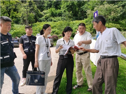 图为下陆区纪委监委干部到该区水库检查防汛责任落实情况