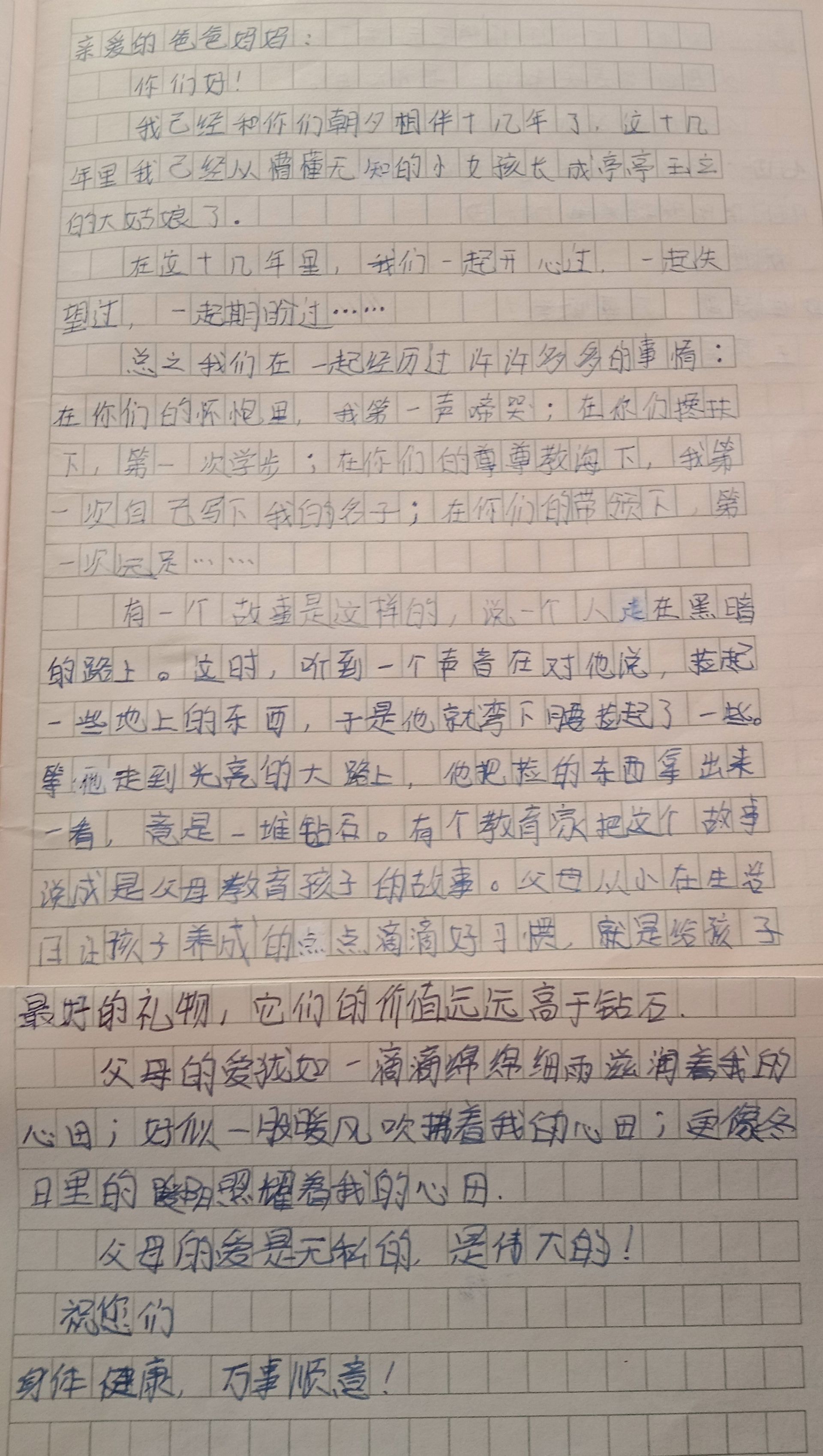 今天,“少年领读者·一封家书”编辑组收到了来自武汉市金口小学王梦清同学写给爸爸妈妈的一封信。