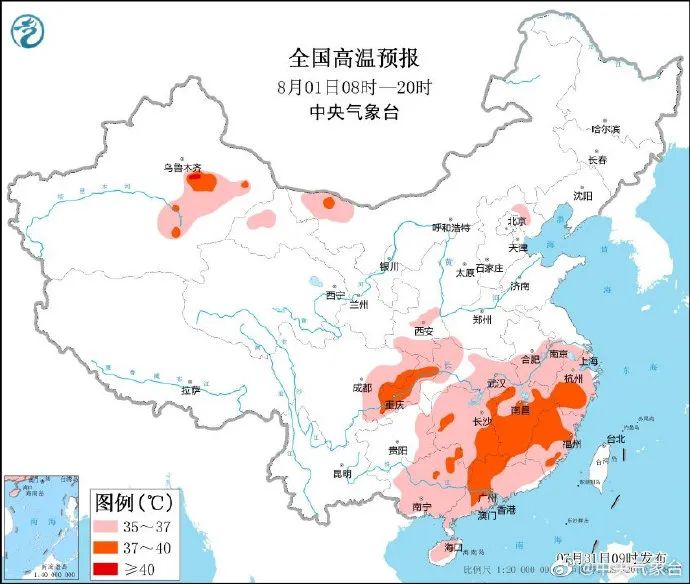 8月1日:全省晴天间多云,其中鄂西北、鄂西南午后局部有阵雨或雷阵雨。