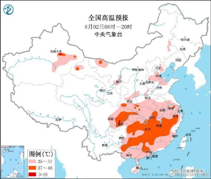 8月2日:全省晴天间多云,其中鄂西北、鄂西南午后局部有阵雨或雷阵雨。