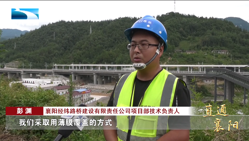 襄阳经纬路桥建设有限责任公司项目部技术负责人 彭渊:“针对山体滑坡后面的裂纹,我们采取用薄膜覆盖的方式,防止雨水进入裂纹造成次生灾害;同时我们开挖截水沟,防止雨水冲刷滑坡体。”
