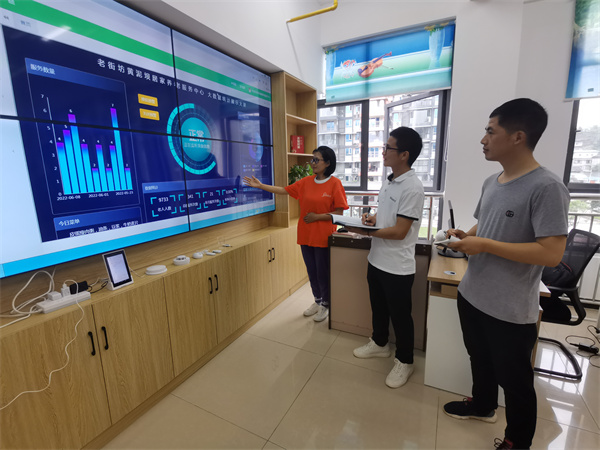 恩施州纪委监委干部在包保社区的智慧养老服务中心走访,了解社区智慧养老服务情况及发展中存在的困难