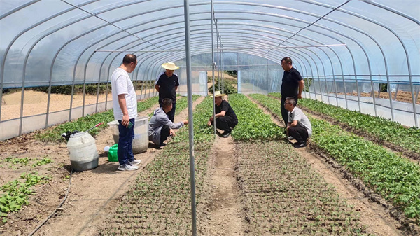 鹤峰县太平镇纪委干部在蔬菜种植大棚走访