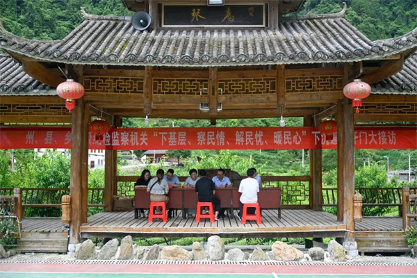 州、县、乡三级纪检监察干部在宣恩县长潭河侗族乡兴隆村接访