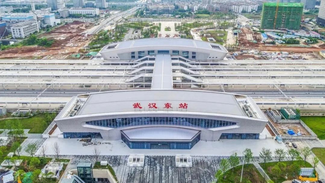 武汉是全国最大的铁路枢纽城市之一,目前有三座大型铁路客运站:武汉站、汉口站、武昌站。武汉东站是继武昌、汉口、武汉火车站之后通车的铁路“第四站”,也是武汉铁路枢纽“五主(武汉站、武昌站、汉口站、汉阳站、武汉天河站)两辅(武汉东站、长江新区站)”客运布局规划中的辅助客运站,位于武汉市东湖新技术开发区,处于光谷大道、高新大道、光谷一路和高新二路合围而成的区域,北临光谷科创大走廊主轴高新大道,西接光谷大道,10分钟可上三环线,40分钟通达武汉三镇核心区,60分钟可抵达天河机场。
