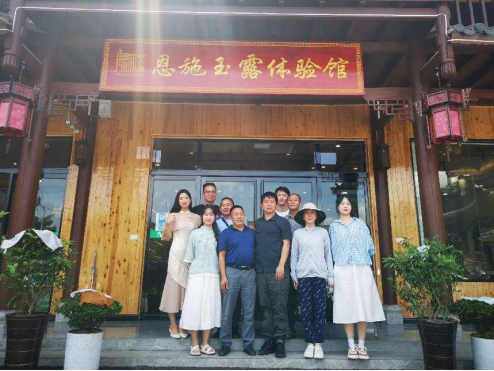 在陈巧灵老师的牵线搭桥下,武汉城市职业学院创业学院潘中锋老师、文化创意与艺术设计学院李兰青、李伟老师带学生直播团队来到恩施白杨坪镇九株驿站,他们考察了茶厂的茶园、车间,品鉴了仓库里积压的恩施玉露,讨论了包装和营销策略。