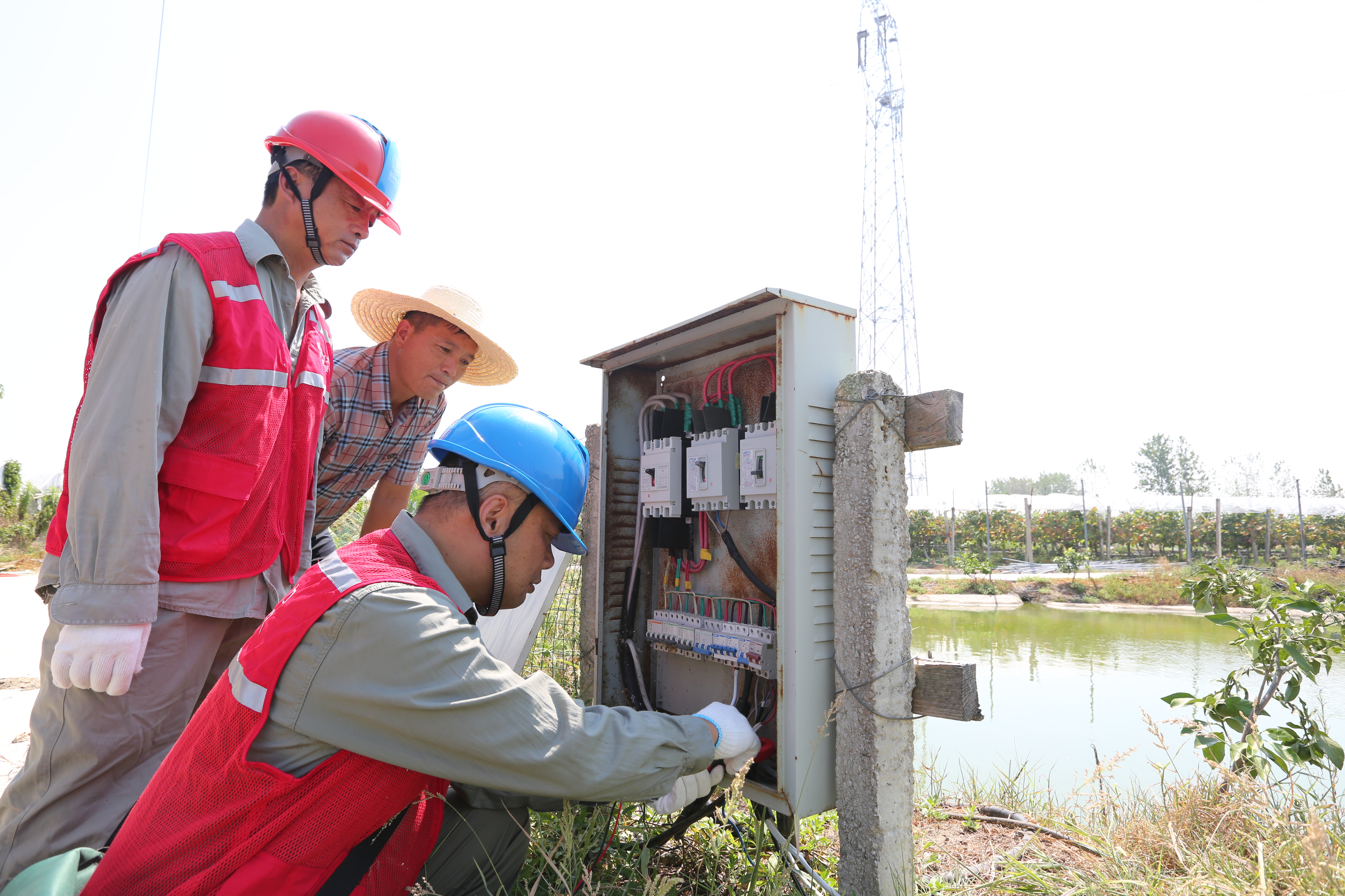 “抽水泵用电容量如果需要增加,与我们联系后会立即为您办理增容业务,确保灌溉用电无忧。”仓埠供电所的共产党员服务队员一边检查配电箱情况一边说道。对供电公司的上门服务,葡萄园负责人表示十分满意,“天气这么炎热,供电公司还是上门为我们提供用电服务,你们辛苦了!”下午3时,国网武汉市新洲区供电公司的工作人员对附近5家种植户的抽水泵、保鲜冷库、照明用电检查完毕,随即继续对沿线园区供电线路、设备开展巡视,确保高温天气农耕用电供给可靠。