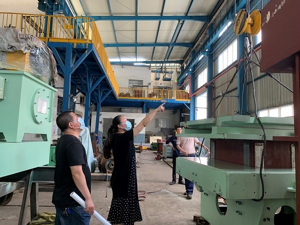 图为青山区新沟街纪工委联合区域发展办公室,调研了解区内企业生产经营情况