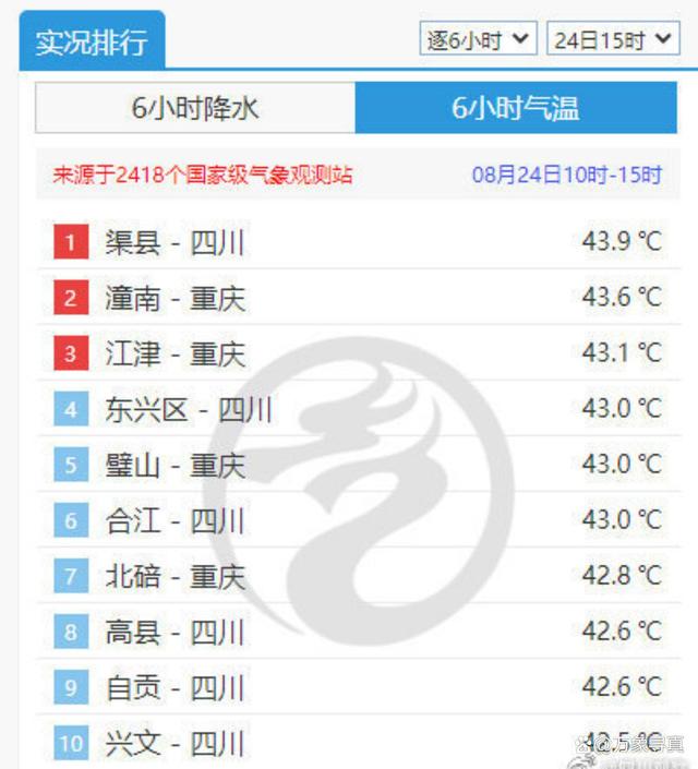事实上,刘同学的感慨早已照进现实。8月以来,川渝地区已持续多日高温红色预警,多地更是连日“承包”全国高温前十。据四川气象官微消息,截至8月24日15时,四川高温再次刷新纪录。14:58达州渠县达到43.9℃,打破了四川省国家气象站的最高纪录。