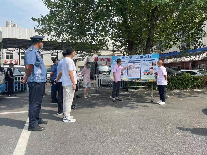 出租车,既是市民们通勤的重要工具,也是各地旅客认识武汉的一扇扇流动“窗户”。为擦亮“窗口”,提升行业风貌和服务质量水平,26日上午,武汉江汉区城管执法局联合市交通运输综合执法支队二大队、汉口火车站综合管理办公室及辖区武汉大通、武汉富山等5家客运出租车公司在汉口火车站内开展了一场“文明交通 出租先行”倡议宣传活动。