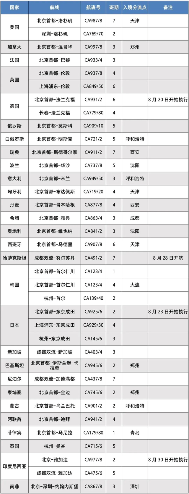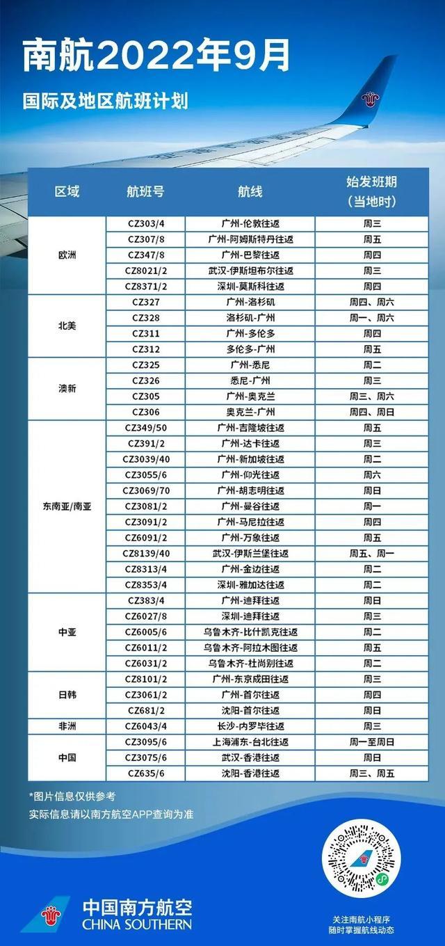 此外,中国国际航空、南方航空、厦门航空等各大航空公司近日相继发布9月国际及地区航班计划。具体如下: