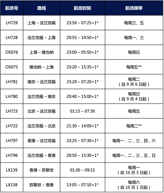 注:以上航班均为当地时间,如遇航班变动,请以实际查询为准。