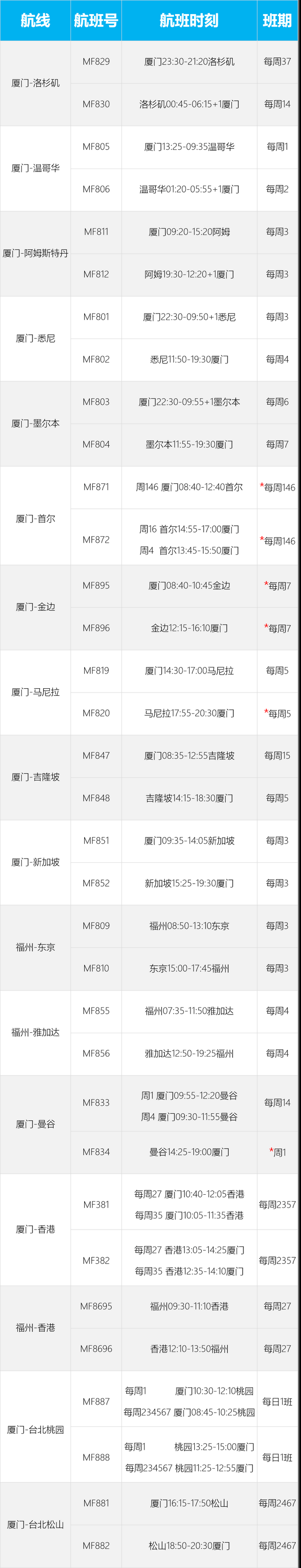 *MF871/2“厦门=首尔”周四仅执行9月8日;
