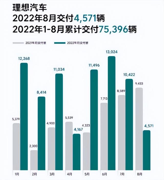 今年9月1日,理想汽车在宣布8月份交付量的时候,也同时透露理想L8将会在今年11月份发布,并且“发布当月即开启交付”。有人分析理想ONE停产也是为了给即将发布的L8让路。理想汽车创始人李想本人也曾表示:“持币观望L8的朋友就不要买ONE了。”据9月1日理想汽车公布的今年8月份交付数据显示,理想汽车8月交付4571辆汽车。而7月交付量为10422辆,环比下滑了56.14%;2021年同期的交付量是9433辆,同比下滑了51.54%。