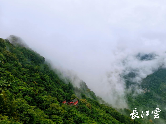 一阵秋雨一阵凉,阵阵秋雨让武当山南岩景区更显灵动,在山林间弥漫的云海随着飘忽的风时聚时散,红墙绿瓦的宫观也在云海中时隐时现。虽然是雨天,可还是吸引了一些游客前来探寻。