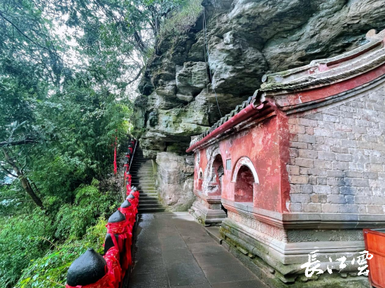 告别云外居步行不到五分钟的时间,就来到了雷神洞。据史料记载,雷神洞开凿于元代,是武当山著名道人张守清曾在此修。雷神洞也是一座古老的石殿,从石壁上的刻字和墙上的碑刻来看,这里曾经也是香客信士常来之地。