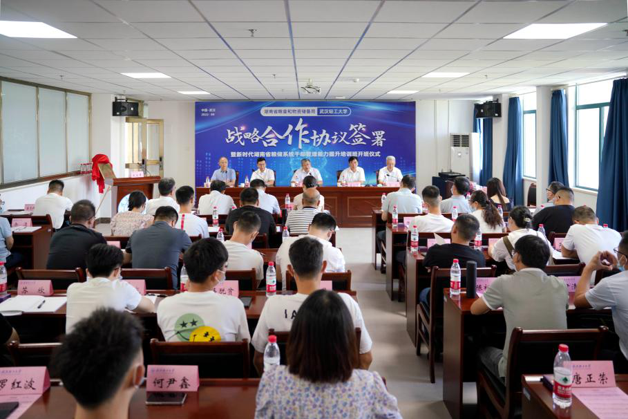 9月5日上午,湖南省粮食和物资储备局与武汉轻工大学战略合作协议签署暨新时代湖南省粮储系统干部管理能力提升培训班开班仪式,在武汉轻工大学金银湖校区工程实训楼602室举行。湖南省粮食和物资储备局党组成员、副局长覃世民,湖北省粮食局党组成员、副局长李硕,武汉轻工大学党委书记王立兵,校党委副书记、校长董仕节出席会议。会议由该校党委副书记刘丰林主持。