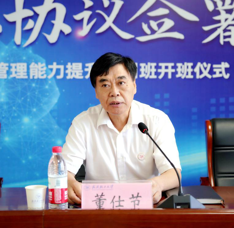 王立兵在讲话中指出,作为全国最早培养粮食行业专门人才的学校,武汉轻工大学因粮而生、因粮而兴、因粮而盛,从诞生之初就肩负维护国家粮食安全的使命。此次协议正式签署、干训班正式开班,既是轻工大与湖南局深化校地合作的一座里程碑,更是进一步探索科技与人才融通发展协作、创新政产学研用深度融合的又一新起点。为深化政产学研用合作,办好此次干训班,王立兵希望,一是强化使命引领,在双向赋能中,打造局校合作“桥头堡”。要全面服务“优质粮食工程”“粮食节约行动”,打造全国粮储系统与部属粮食学校的战略合作双向赋能“黄埔一期”的样板。二是突出创新制胜,在双向协同中,打造政产学研用深度融合“策源地”。要积极打造粮食和储备创新平台、创新中心,为支持湖南粮食和物资储备事业高质量发展做出轻工大贡献。三是聚焦人才培养,在双向互动中,打造科技人才工作“排头兵”。要发挥培育人才的核心作用,为湖南粮食系统培养一批适应新时代需要的各方面骨干力量,为“粮储湘军”输送可堪大任的铁军人才。