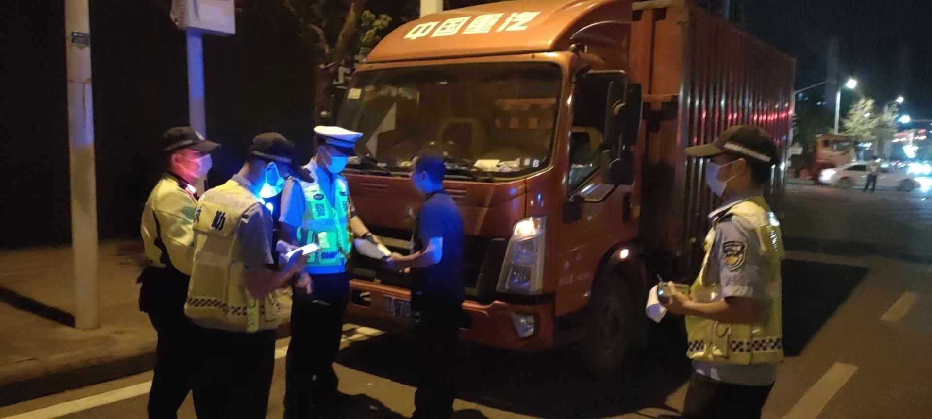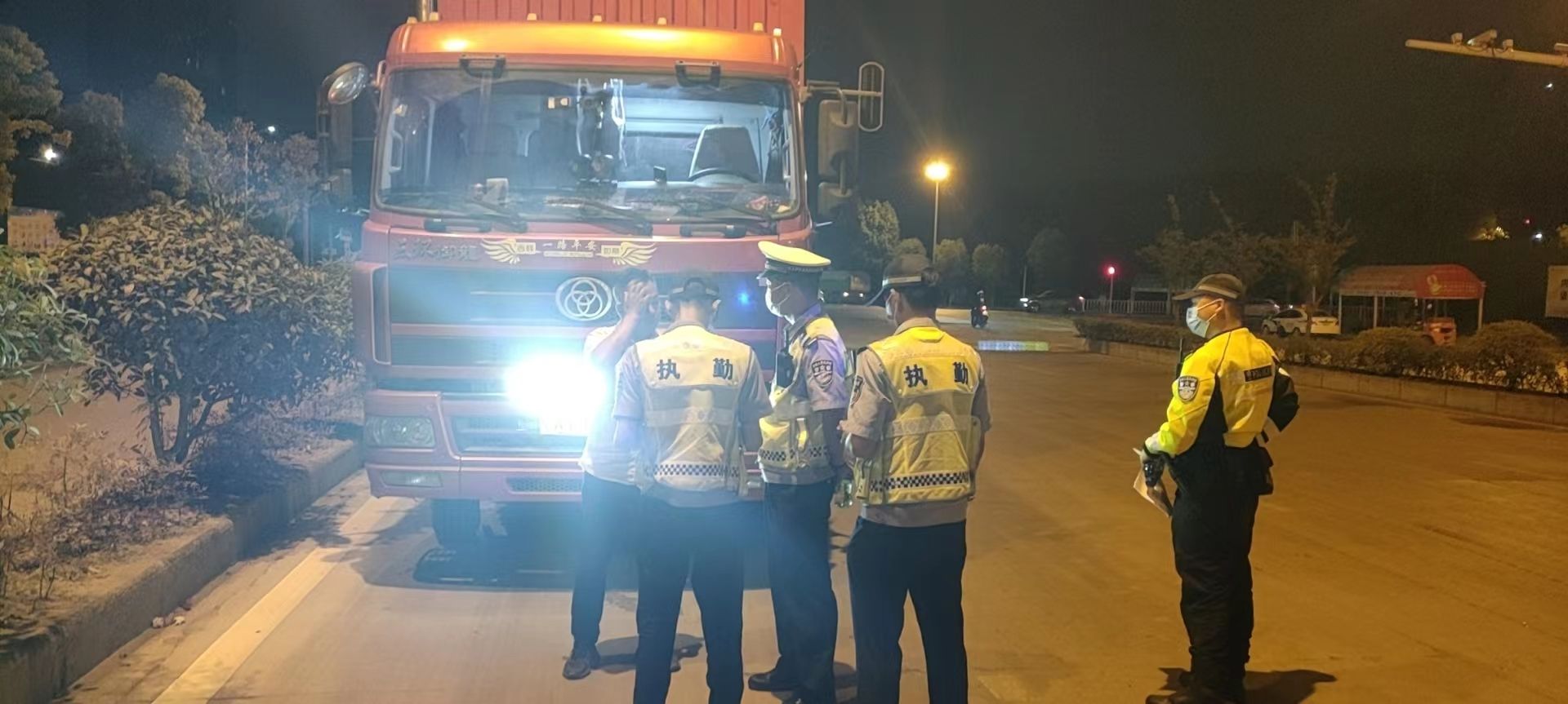 9月9日晚,蔡甸区交通大队汉警快骑机动队联合分局巡逻快反力量在辖区重点路段开展巡查宣防统一行动,先后查处渣土车超载8起、不按导向车道行驶3起、非法改装4起。