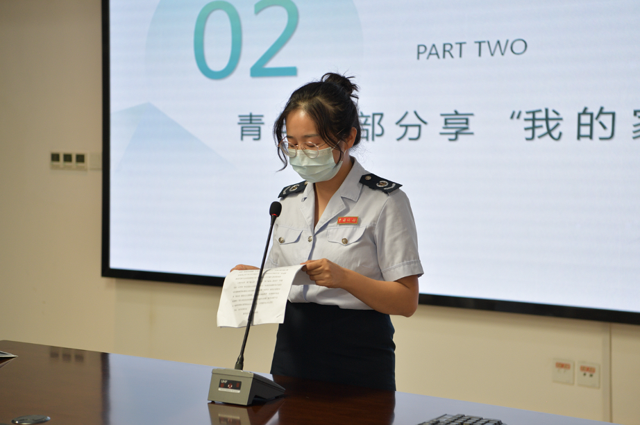 图为该市税务局干部正在讲述祖辈、父辈的优良家风故事,推动清廉价值理念在家庭落地生根。