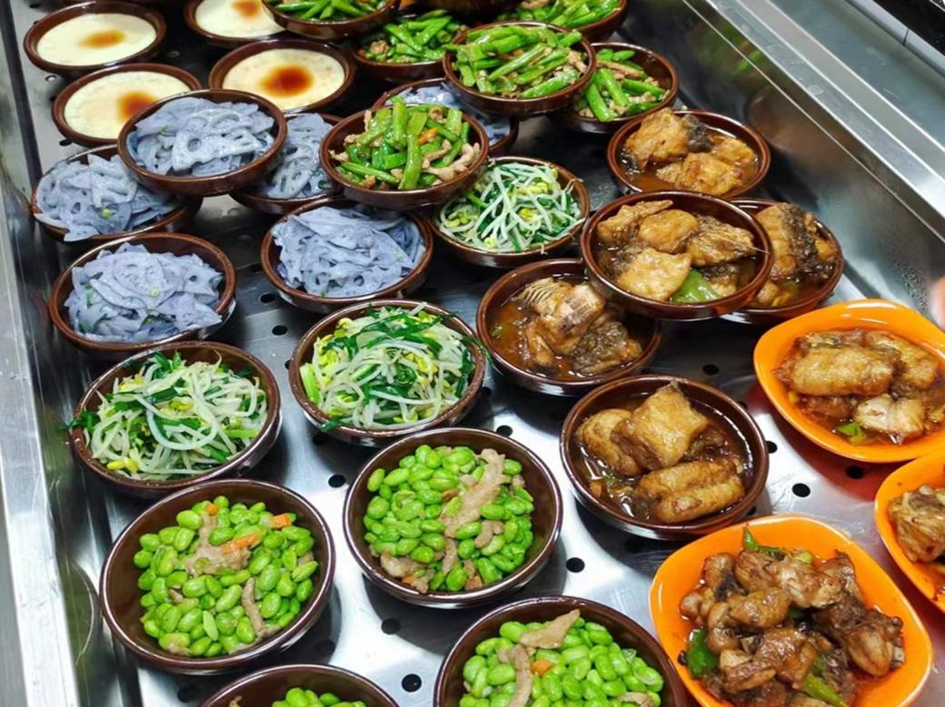 图为寒溪社区幸福食堂丰富多样的可口饭菜