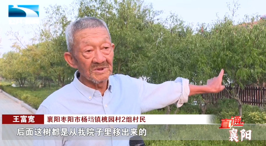 襄阳枣阳市杨垱镇桃园村2组村民 王富宽:“后面这树都是从我院子里移出来的,我们村里有很多的村民都自发都自己做的捐献给公园里,这个小公园搞好了以后,我们也受益,环境好了,空气好了,我们群众、老百姓都得到实惠。”