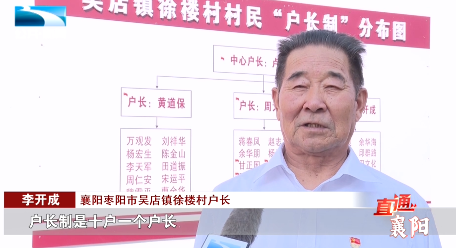 襄阳枣阳市吴店镇徐楼村户长 李开成:“我们徐楼村实行户长制,户长制是十户一个户长,户里有困难、有矛盾、有纠纷,户长能解决的,户长解决,户长不能解决的收集起来,反映到村里,由村里解决。大事不出组,小事不出村。”